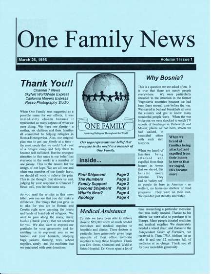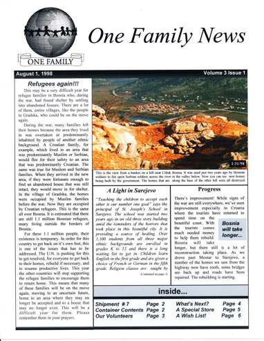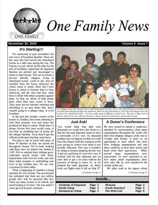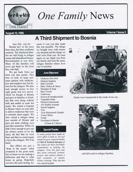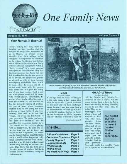 Remember our first newsletters that were in black and white and printed on blue paper. Reading these will bring back some memories of our early years. It’s sad to say that some of those refugee camps in Bosnia still exist today.
